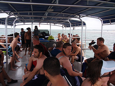 Osazenstvo naší lodě bylo rozděleno do čtyř skupin, načež jsme naskákali do vody a v této pozici jsme více než hodinu brázdili hladinu a mnozí také dno korálového útesu.